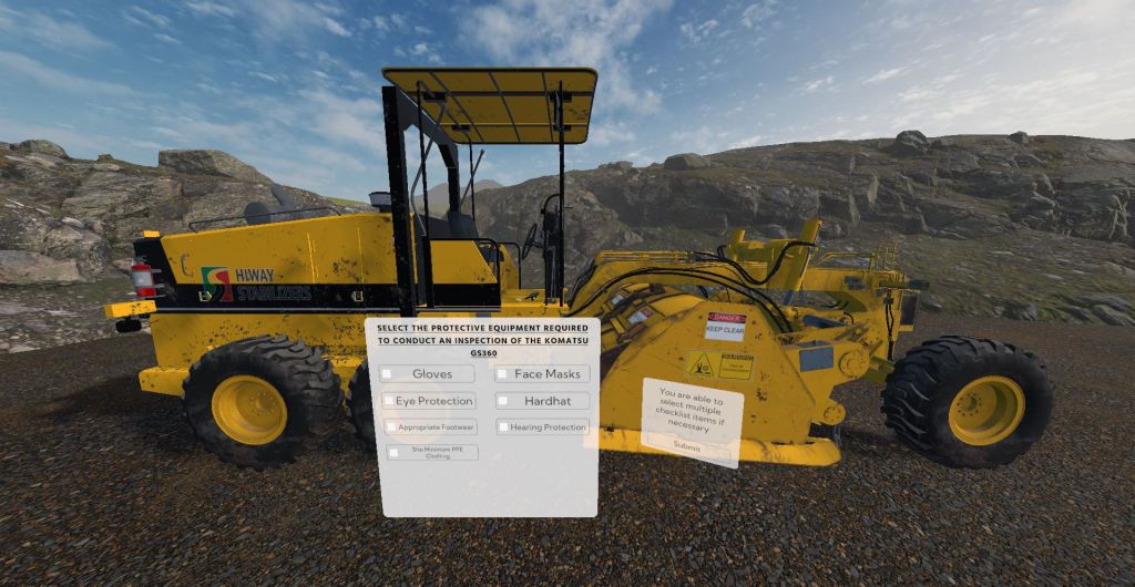 The purpose behind this project was that traditional training methods can be expensive due to the use of actual equipment and the need for specialized trainers. The VR program did significantly reduce training costs by minimizing the use of real equipment and associated resource requirements. Trainees are given the opportunity to practice various tasks, such as machine start-up and shutdown sequence, excavation, and maintenance, in a realistic VR environment. This information is then assessed and directly updates the customers workforce management systems via the internet. The great benefit of the program being developed for the Quest 2 means that it can maintain accurate simulation due and instant assessment of trainees without bulky extra equipment due to the Quests’ standalone functionality.